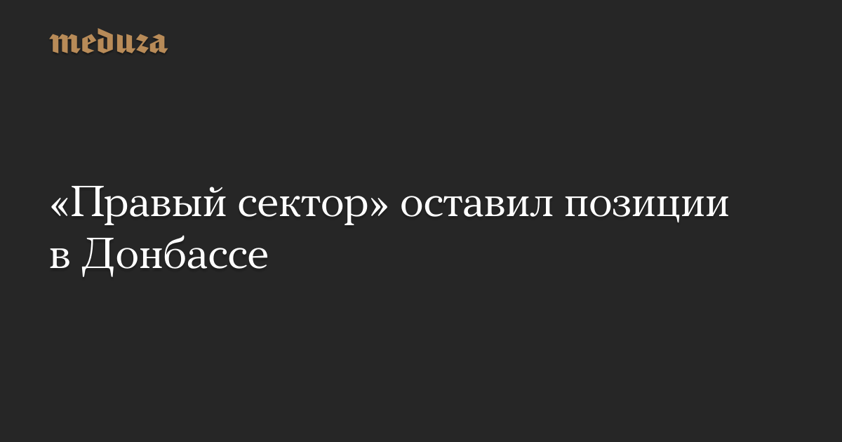 Бойцы радикального движения «Правый сектор» покинули свои позиции в зоне противостояния с сепаратистами в Донецкой области Украины. Рассказавший об этом командир одного из батальонов «Правого сектора» заявил, что получил соответствующий приказ от лидера движения Дмитрия Яроша.