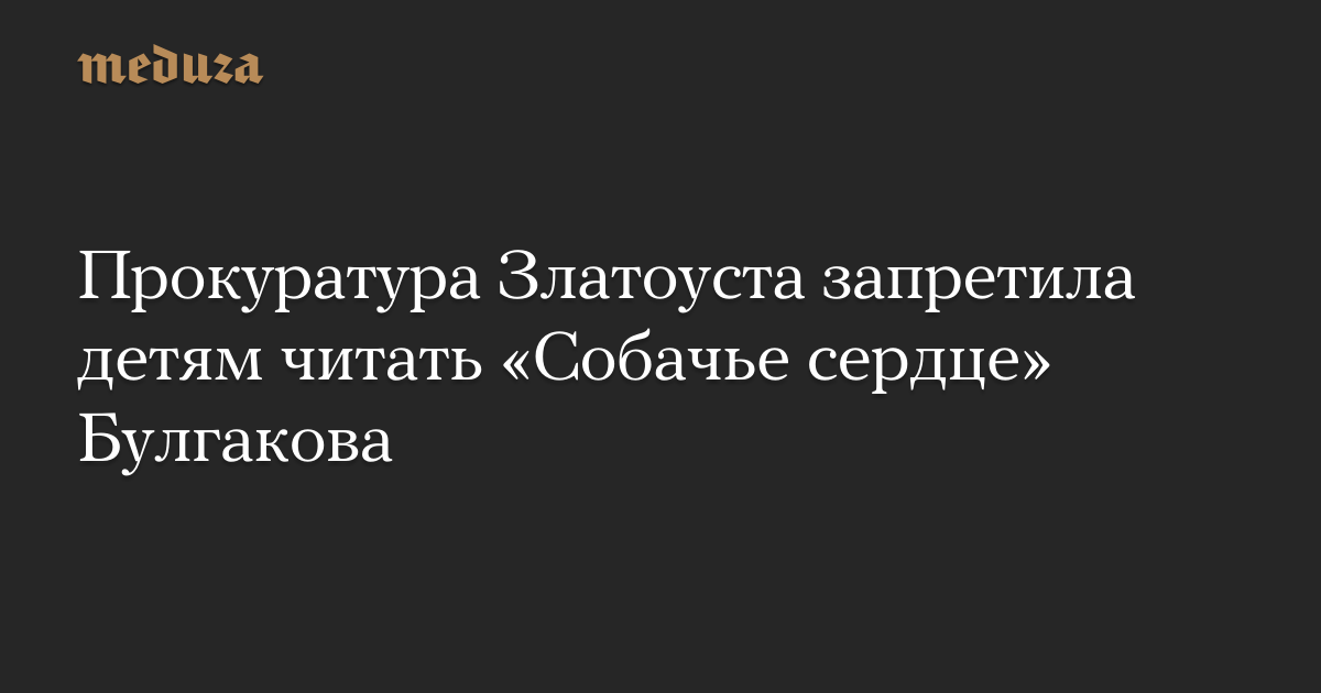 Прокуратура города Златоуст в Челябинской области потребовала убрать из библиотеки детского лагеря книги Михаила Булгакова, включая «Собачье сердце».