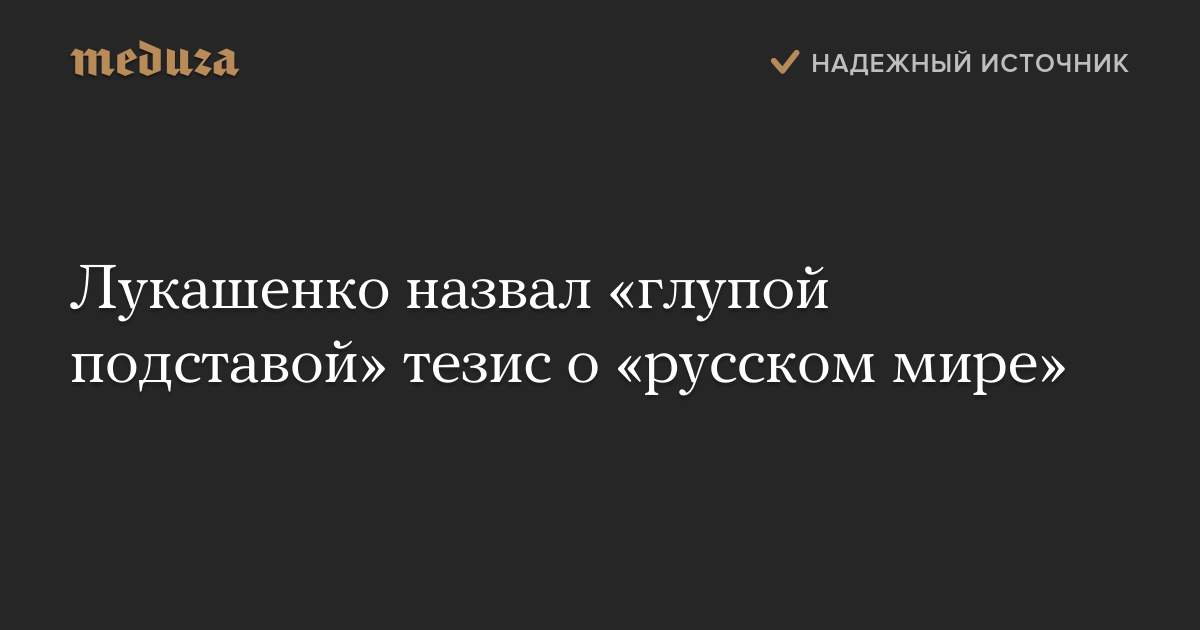 «Я не понимаю, что такое „русский мир“, вы — тем более, а наш народ вообще не понимает, какой русский мир. Тогда можно сказать о белорусском, украинском мире. Это что, какое-то противостояние миров? Поэтому это надуманная, глупая какая-то подстава, тезис», — заявил президент Белоруссии.