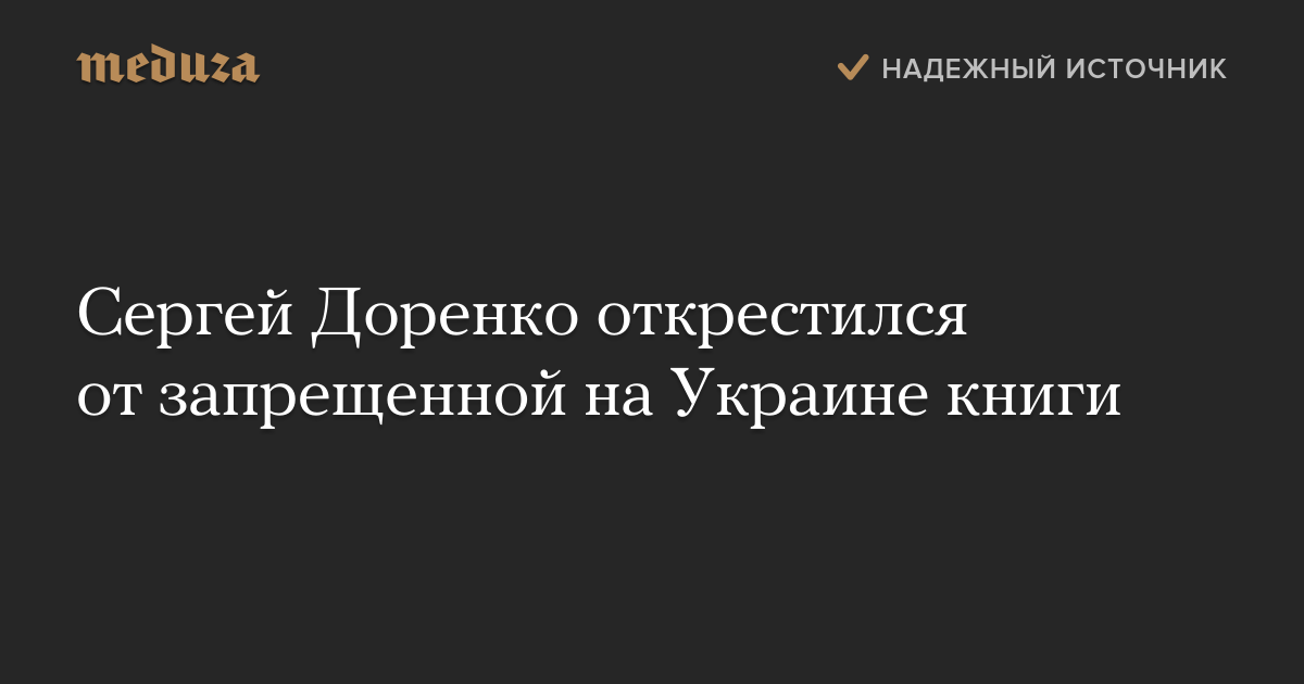 Главный редактор радиостанции «Говорит Москва» Сергей Доренко заявил, что не имеет никакого отношения к книге «Донбасс — дымовая завеса Путина?», которую власти Украины внесли в список запрещенной литературы.