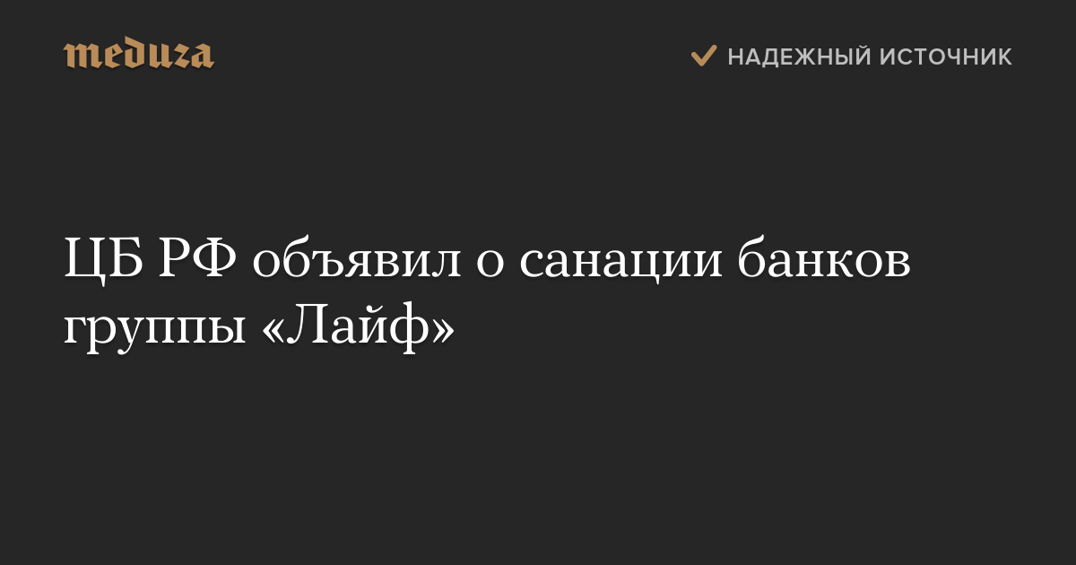 ЦБ РФ объявил о санации банков группы «Лайф»