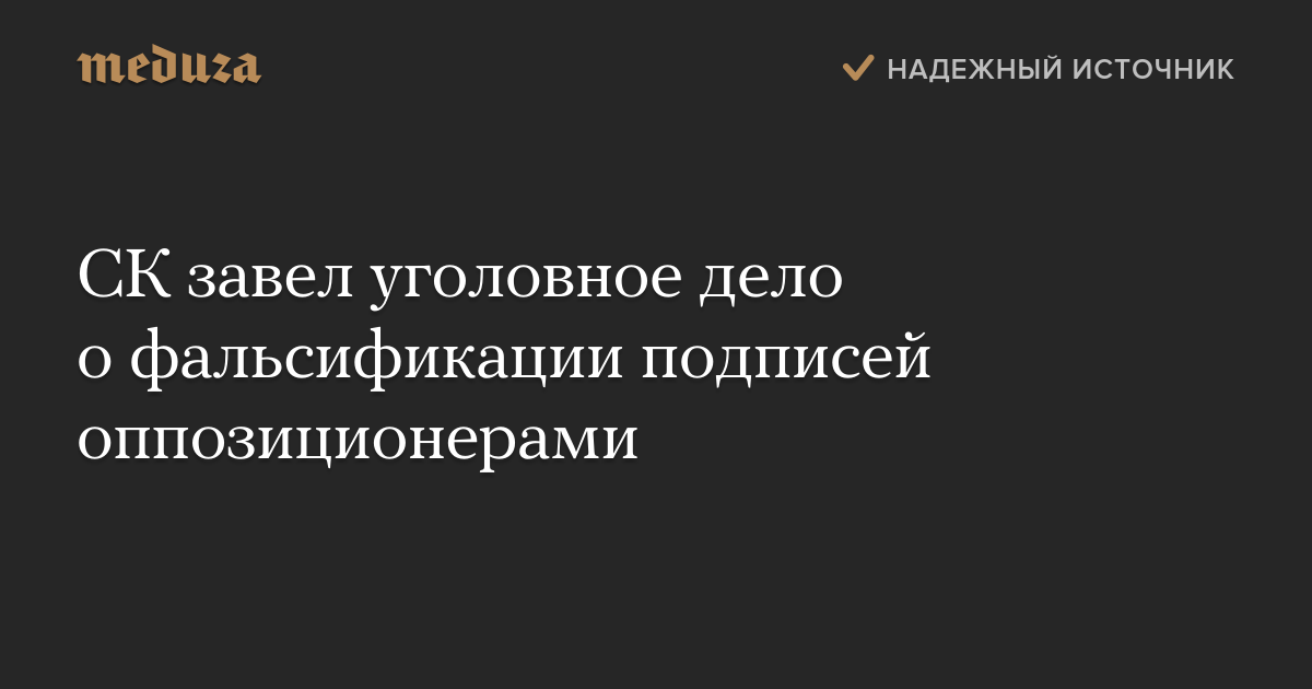 СК завел уголовное дело о фальсификации подписей оппозиционерами