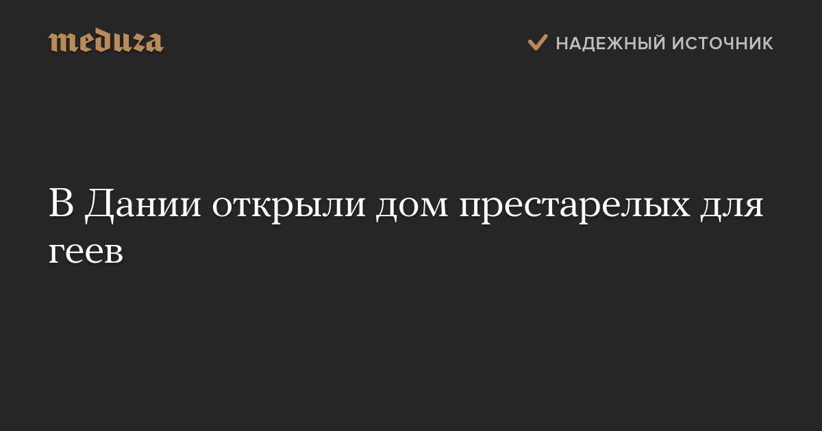 В Копенгагене открылся первый в Дании дом престарелых для геев, бисексуалов и трансгендеров. В обычных домах престарелых они иногда вынуждены скрывать свою сексуальную ориентацию и замыкаться в себе.