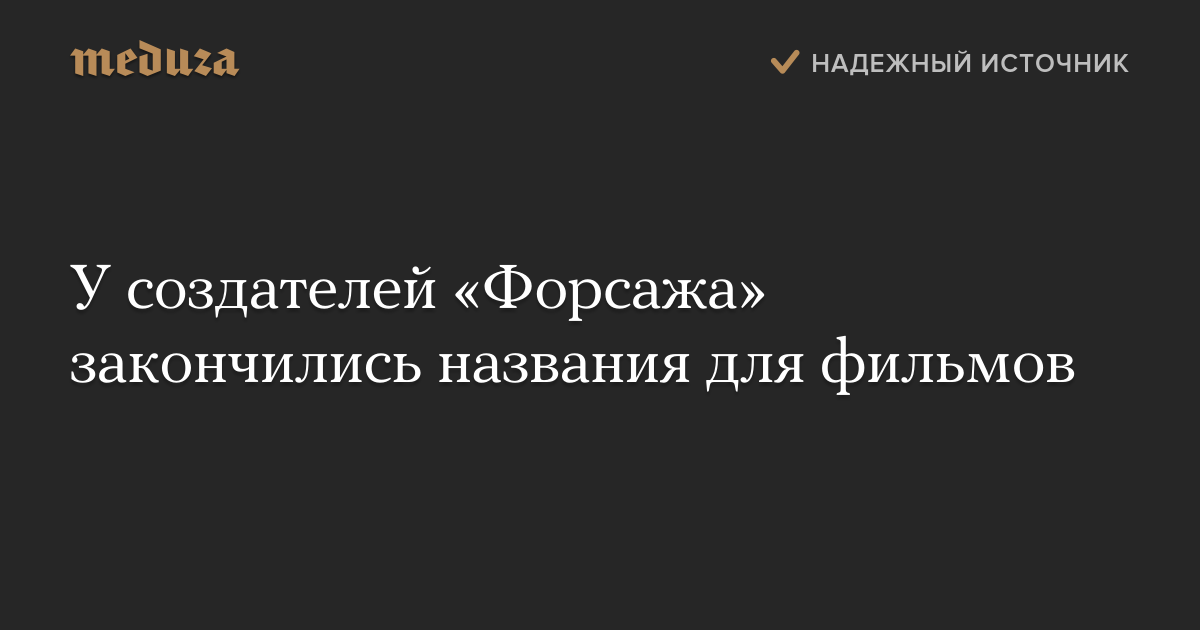 Актер и продюсер серии фильмов «Форсаж» (в оригинале — Fast & Furious) Вин Дизель объявил название восьмой части. Она будет называться Fast 8. Предыдущая часть называлась Furious 7. До этого вышла Fast & Furious 6, а еще раньше — Fast Five. Четвертая часть фильма называлась просто Fast & Furious.