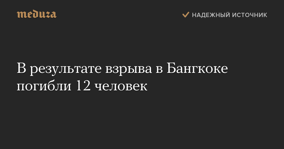 В результате взрыва, произошедшего в центральной части Бангкока, погибли как минимум 12 человек, около двадцати получили ранения.