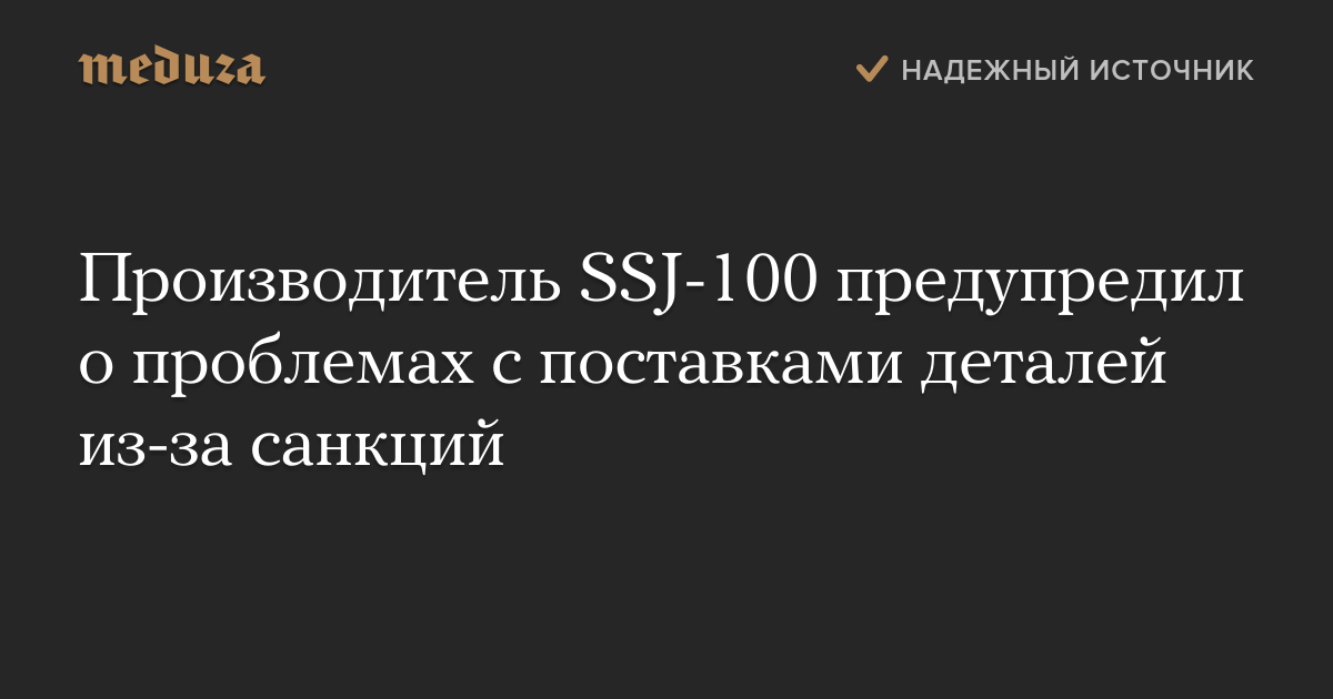 Производитель SSJ-100 предупредил о проблемах с поставками деталей из-за санкций