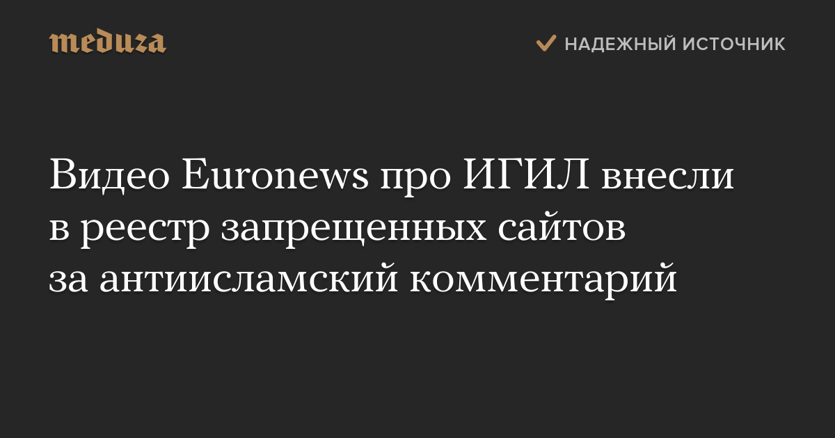 Видео Euronews про ИГИЛ внесли в реестр запрещенных сайтов за антиисламский комментарий