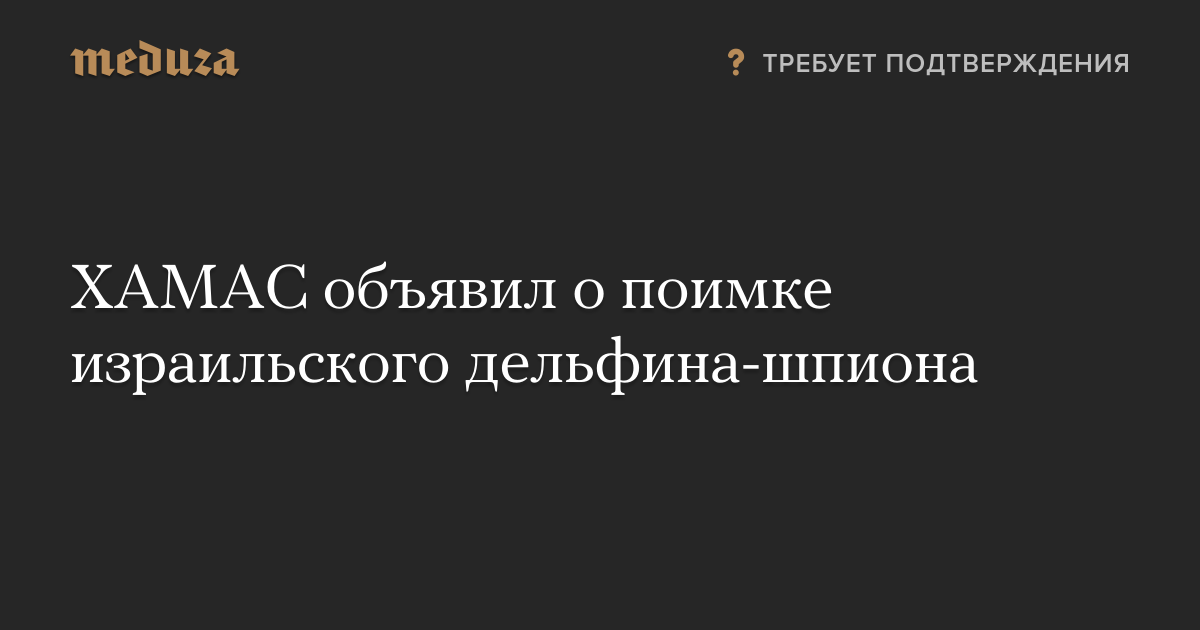 Палестинское движение ХАМАС, контролирующее сектор Газа, заявило о поимке у своей территории «дельфина-шпиона», якобы направленного израильской разведслужбой «Моссад».