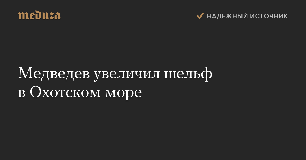 «Хочу также вам сообщить: я подписал постановление, которое закрепляет российскую границу на континентальном шельфе Охотского моря. Что это означает? Это означает, что мы можем заниматься нашим шельфом, и как раз там огромный источник сырья, огромный источник энергии», — сказал он.
