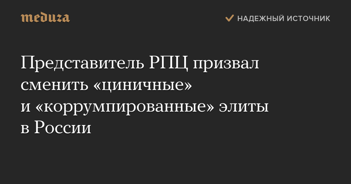 Представитель РПЦ призвал сменить «циничные» и «коррумпированные» элиты в России