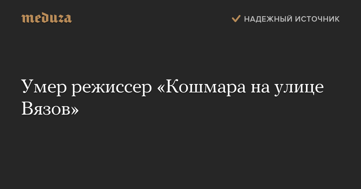 Умер режиссер «Кошмара на улице Вязов»