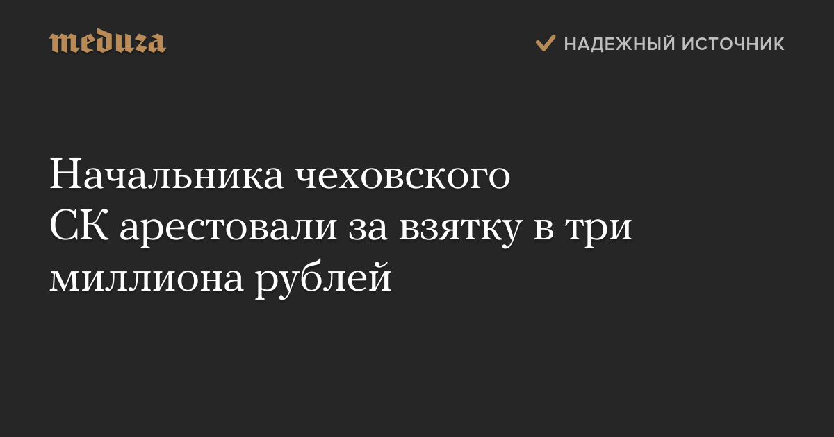 Начальника чеховского СК арестовали за взятку в три миллиона рублей