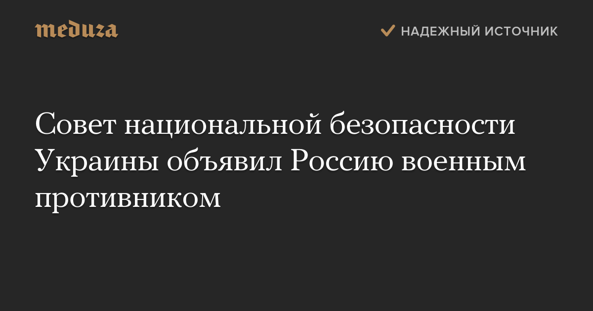 Совет национальной безопасности Украины утвердил проект военной доктрины. В документе говорится, что Россия является военным противником страны. Там же утверждается, что главная угроза национальной безопасности — это высокая вероятность крупномасштабного применения военной силы против Украины.