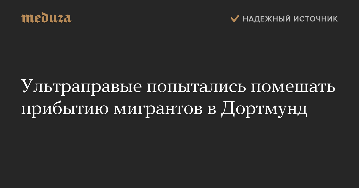 Сторонники немецкой ультраправой партии «Die Rechte» попытались помешать прибытию мигрантов в Дортмунд. В акции приняли участие 26 человек: они прошли по центру города и попытались прорваться на вокзал, куда прибыл поезд с примерно тысячей беженцев.