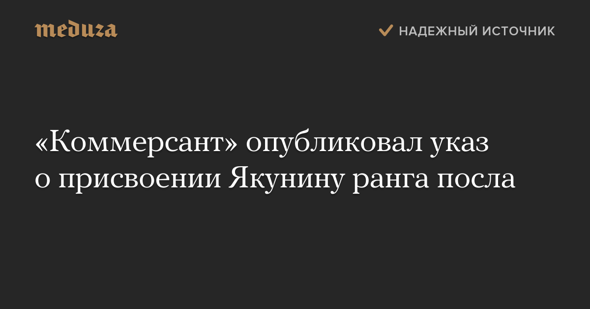 «Коммерсант» опубликовал указ о присвоении Якунину ранга посла