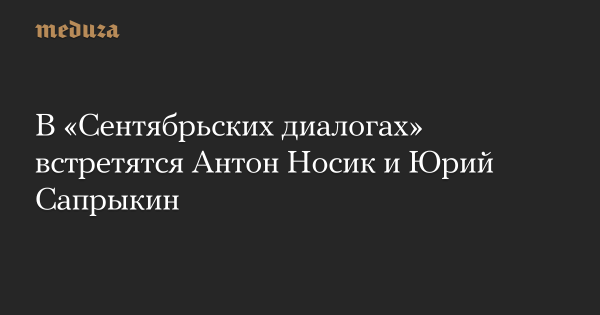 В «Сентябрьских диалогах» встретятся Антон Носик и Юрий Сапрыкин