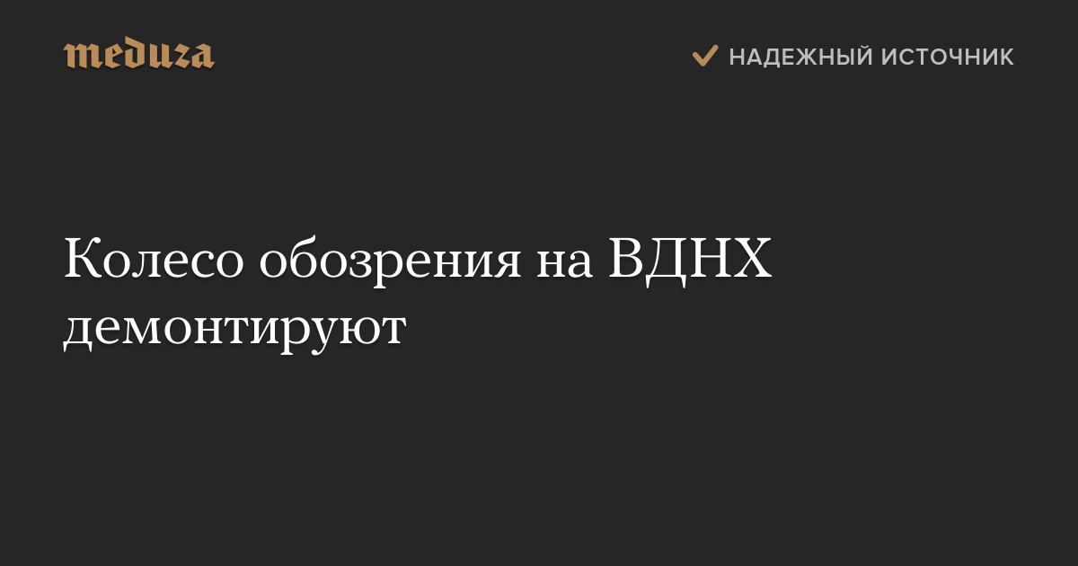 Колесо обозрения, установленное на ВДНХ в Москве, будет демонтировано до 15 октября.