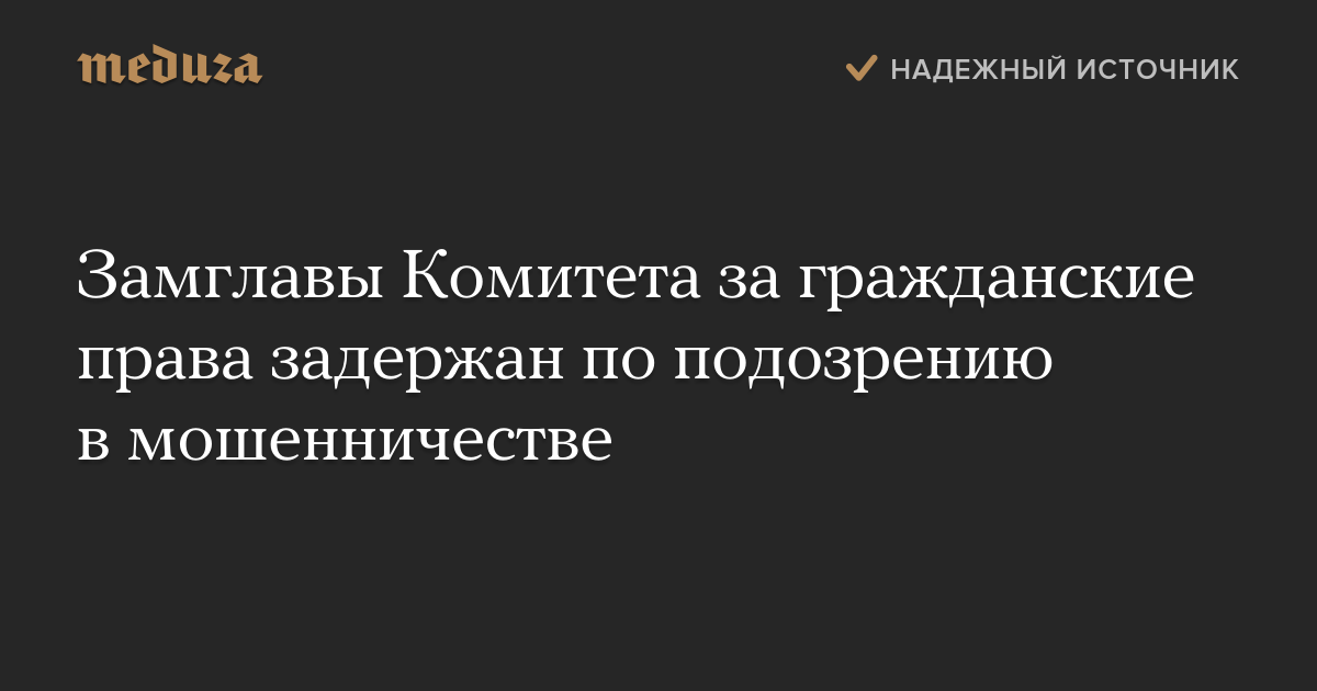 Замглавы Комитета за гражданские права задержан по подозрению в мошенничестве