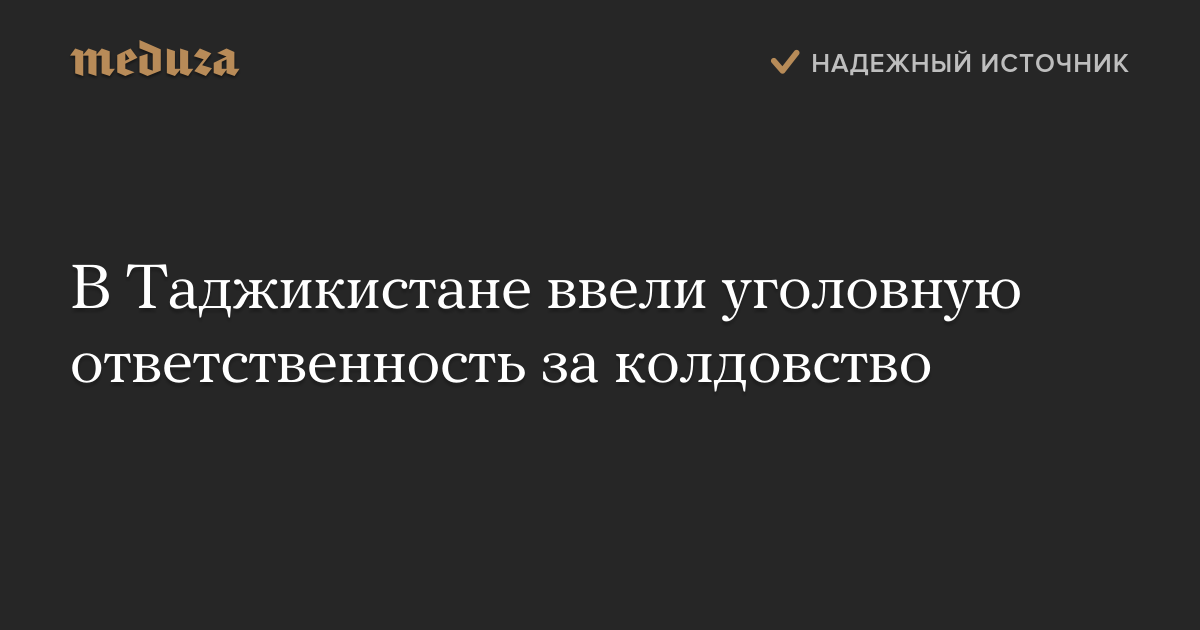 В Таджикистане ввели уголовное преследование за колдовство и чародейство. Закон о внесении соответствующих поправок в уголовный кодекс республики подписал президент Таджикистана Эмомали Рахмон.