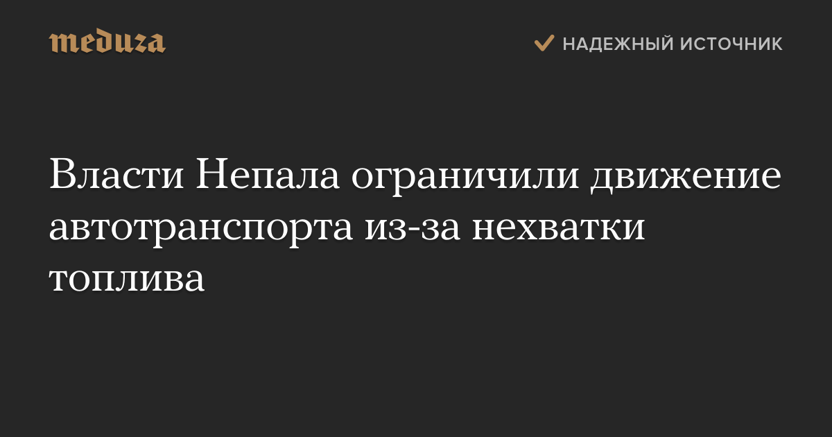 Власти Непала ограничили движение автотранспорта из-за нехватки топлива