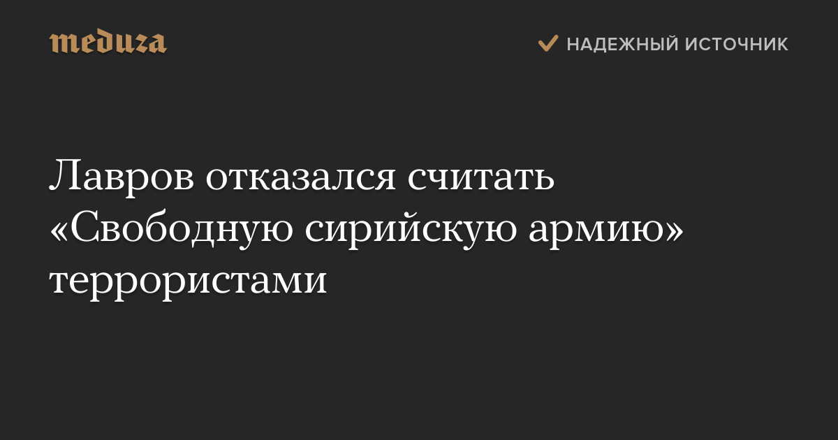 Лавров отказался считать «Свободную сирийскую армию» террористами