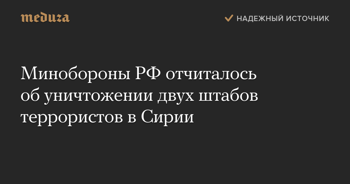 Минобороны РФ отчиталось об уничтожении двух штабов террористов в Сирии