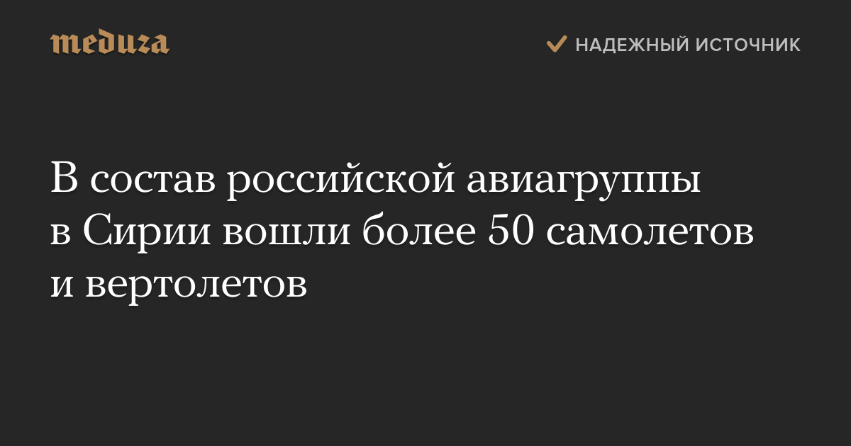 В состав авиагруппы Воздушно-космических сил России, ведущей боевые действия в Сирии, вошли более 50 самолетов и вертолетов. Об этом заявил официальный представитель министерства обороны РФ Игорь Конашенков.
