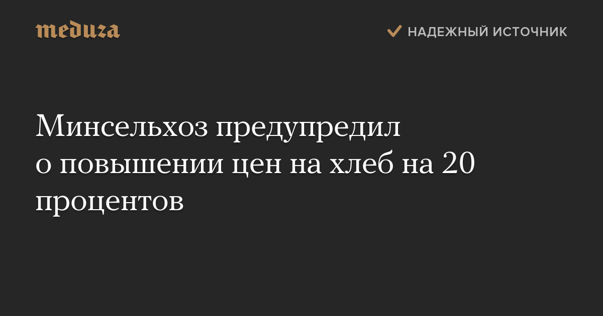 Минсельхоз предупредил о повышении цен на хлеб на 20 процентов