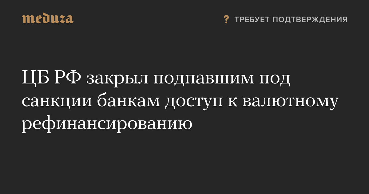 ЦБ РФ закрыл подпавшим под санкции банкам доступ к валютному рефинансированию