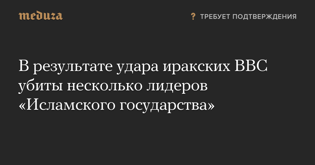 Несколько представителей руководства «Исламского государства» (организация запрещена в России) были убиты в результате удара, нанесенного иракскими ВВС на западе страны.