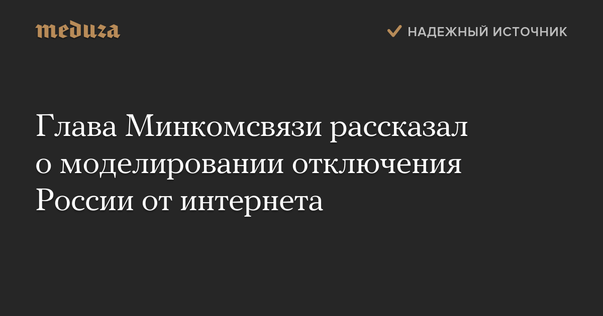 Глава Минкомсвязи рассказал о моделировании отключения России от интернета