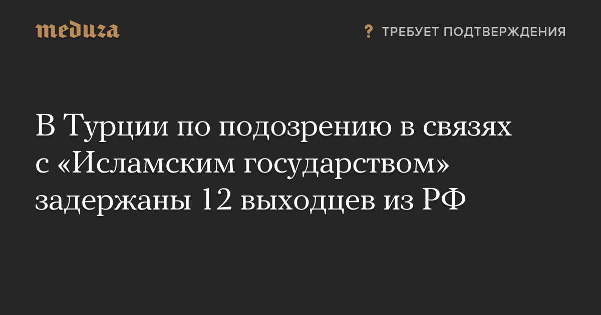 Правоохранительные органы Турции задержали 12 выходцев из Дагестана и Чечни, подозреваемых в связях с «Исламским государством» (в РФ организация признана террористической и запрещена). Об этом сообщила турецкая газета Hurriyet Daily News со ссылкой на источники в спецслужбах.