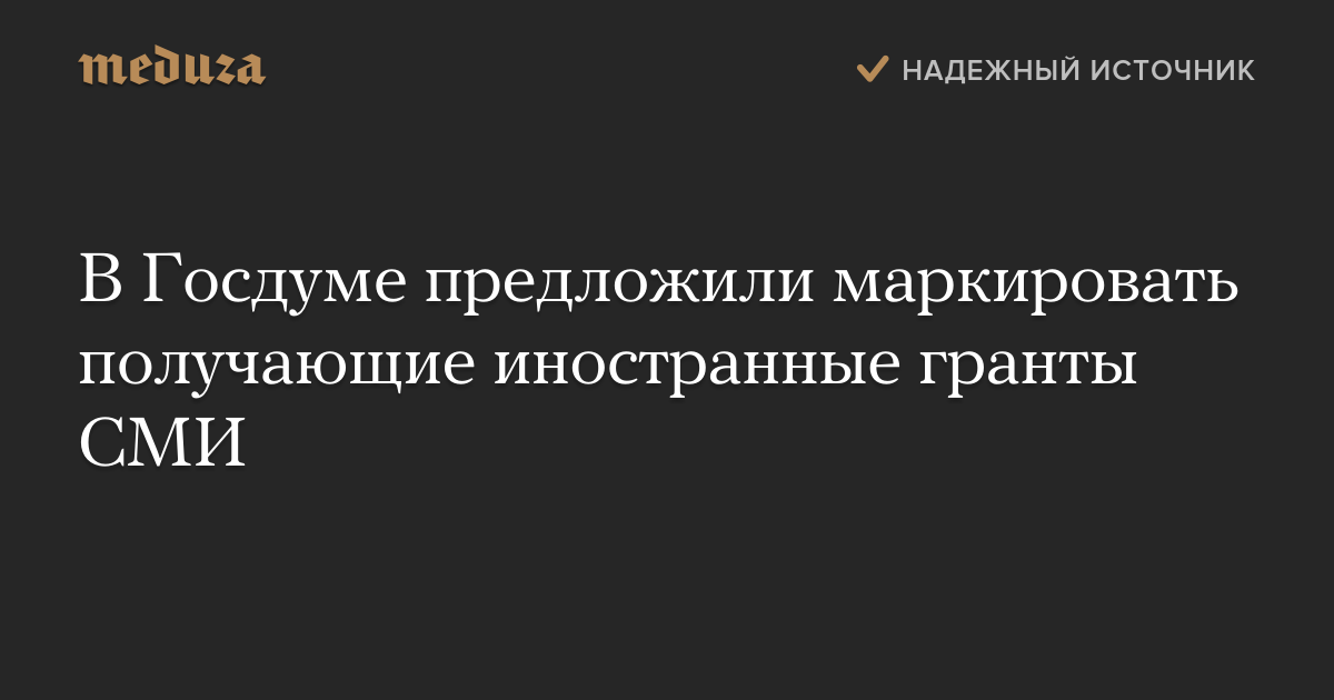 В Госдуме предложили маркировать получающие иностранные гранты СМИ