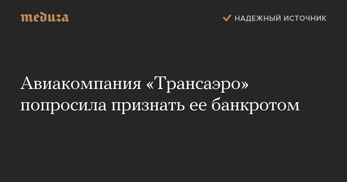 Авиакомпания «Трансаэро» попросила признать ее банкротом