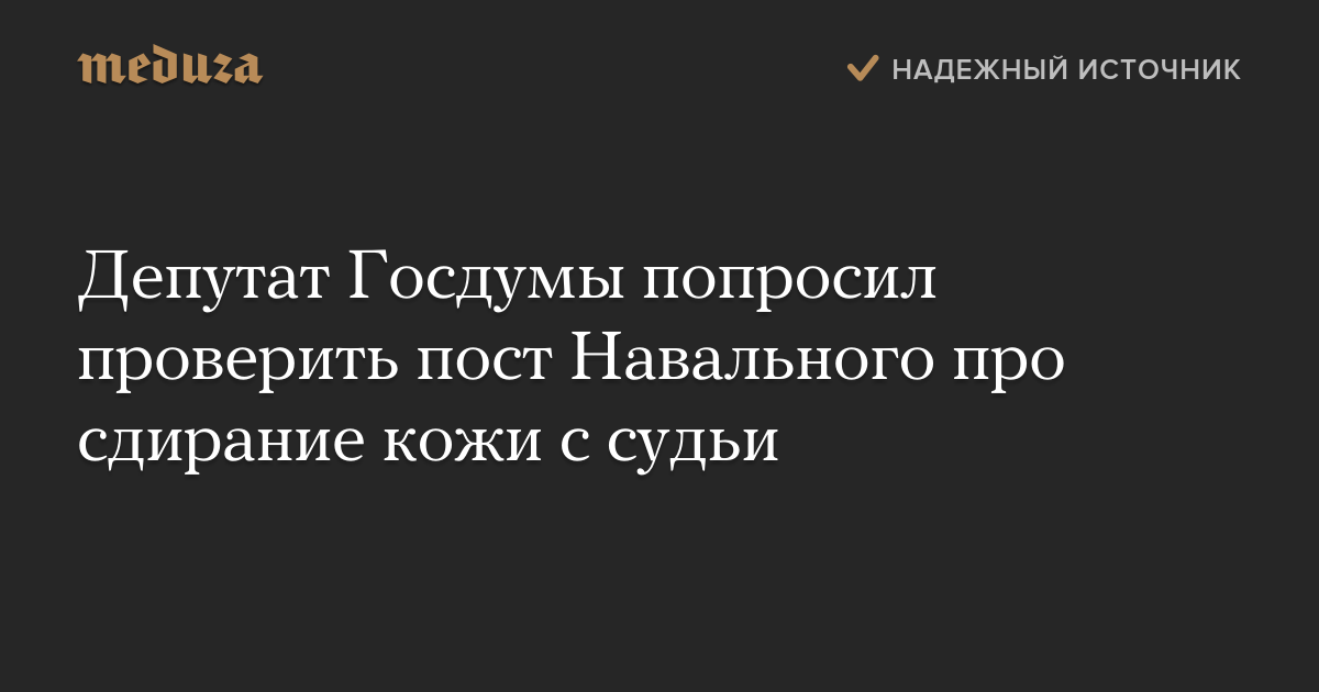 Депутат Госдумы попросил проверить пост Навального про сдирание кожи с судьи