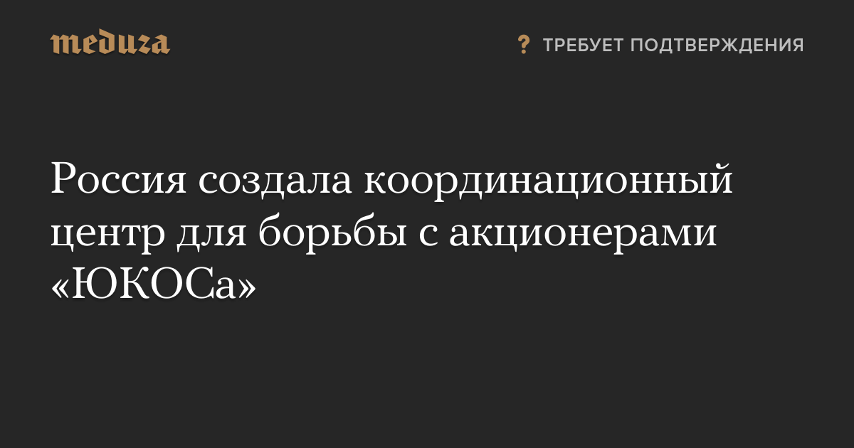 Россия создала координационный центр для борьбы с акционерами «ЮКОСа»