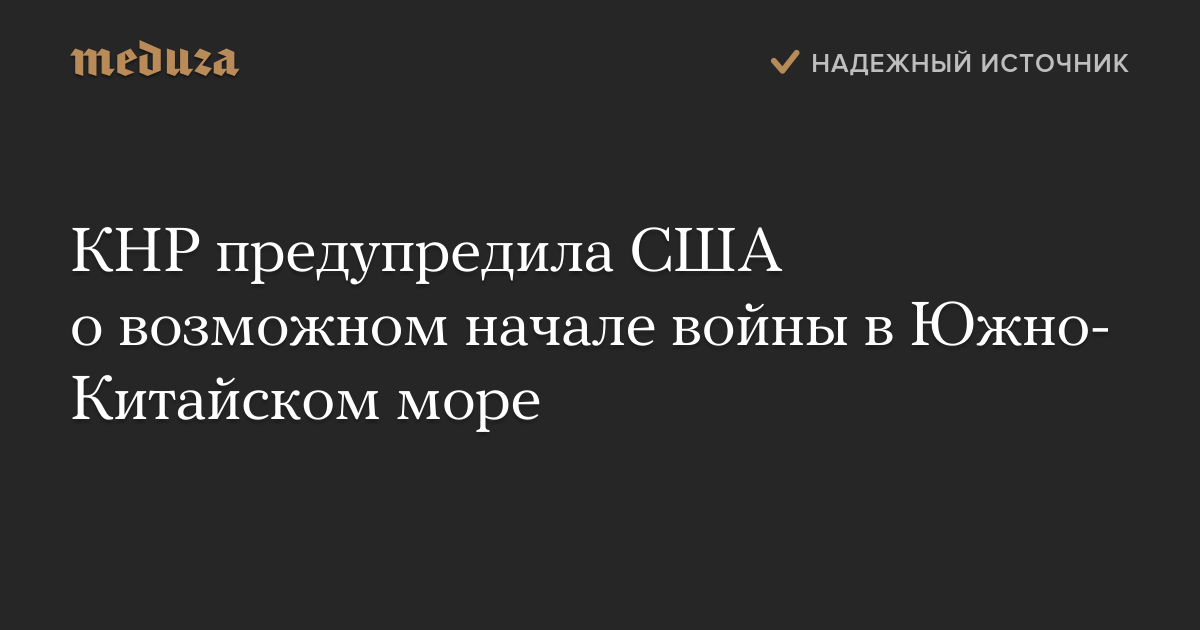 КНР предупредила США о возможном начале войны в Южно-Китайском море
