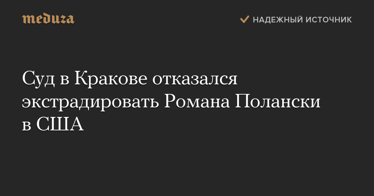 Окружной суд Кракова 30 октября отказал США в экстрадиции режиссера Романа Полански, которого американские власти обвиняют в растлении несовершеннолетней в 1977 году. Сам Полански на заседании не присутствовал.