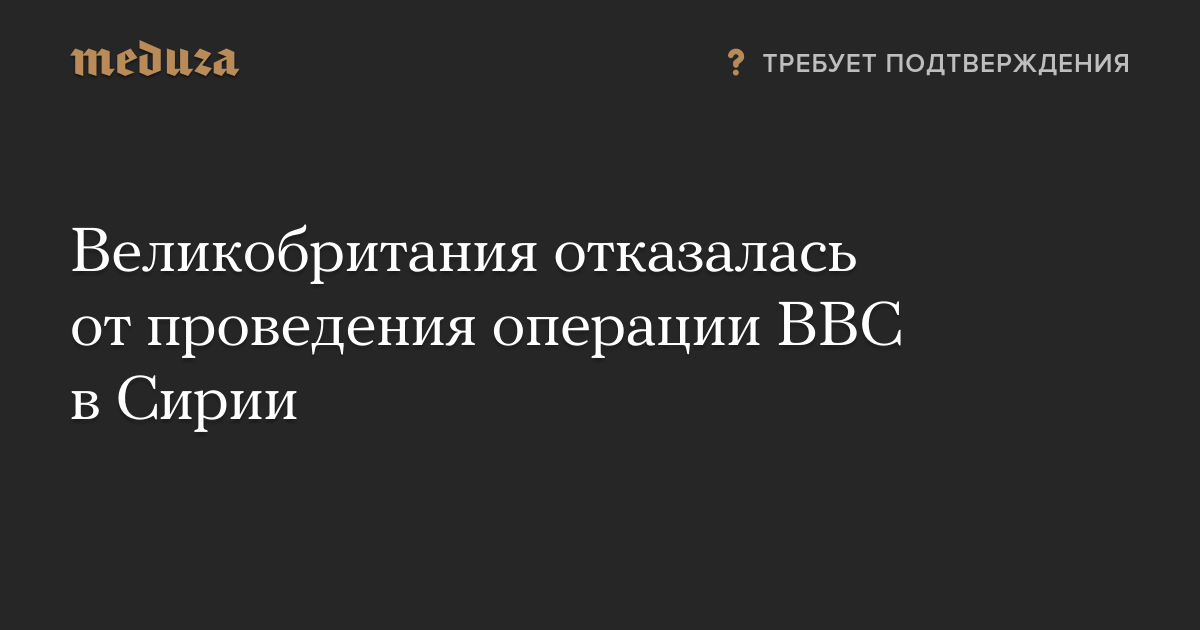 Великобритания отказалась от проведения операции ВВС в Сирии
