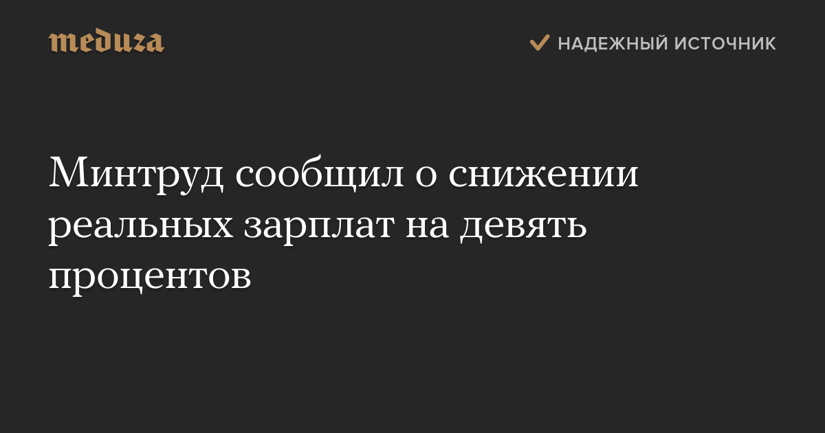 Минтруд сообщил о снижении реальных зарплат на девять процентов