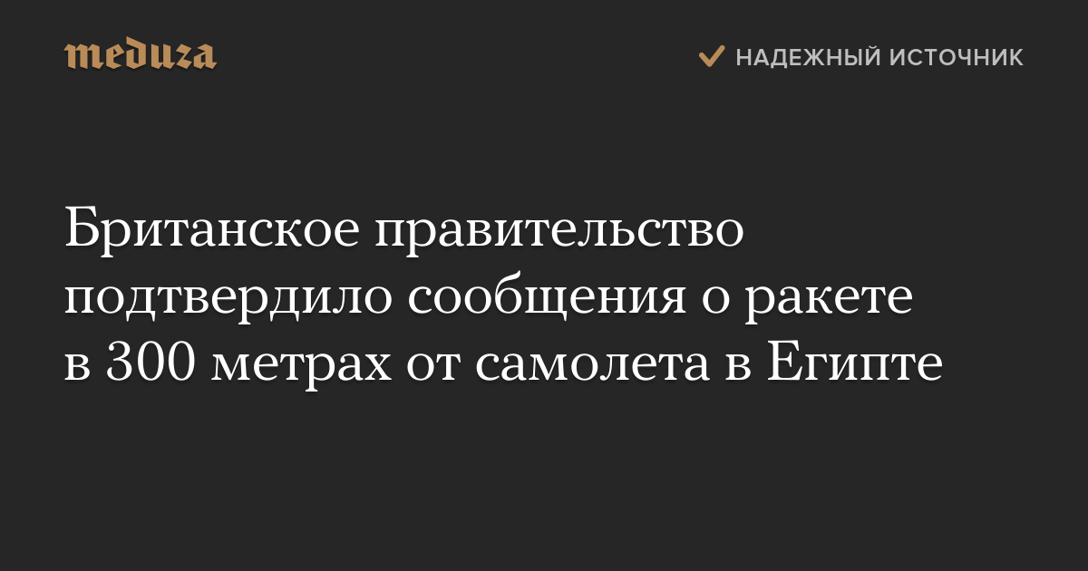 Британское правительство подтвердило сообщения о ракете в 300 метрах от самолета в Египте
