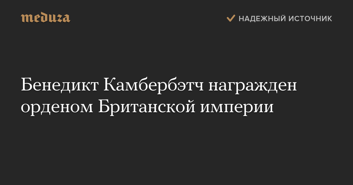 Бенедикту Камбербэтчу был присвоен орден степени командора — третьей по старшинству из пяти ступеней ордена Британской империи. Эта степень не предполагает присвоения рыцарского звания.