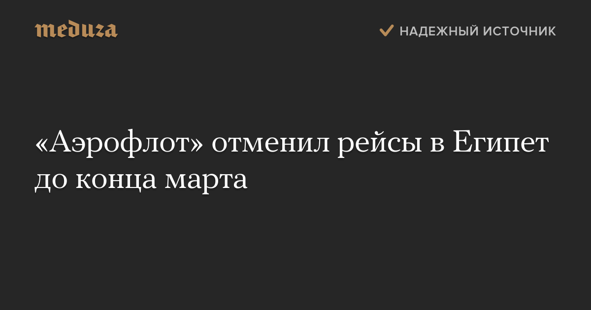 «Аэрофлот» отменил рейсы в Египет до конца марта