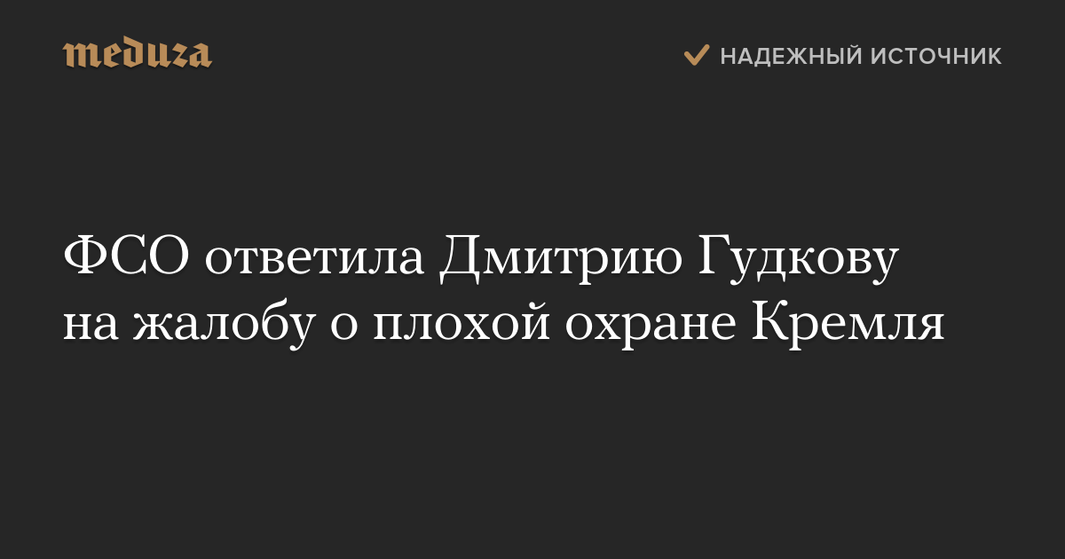 Депутат Госдумы Дмитрий Гудков получил ответ на свою жалобу на Федеральную службу охраны (ФСО), которая, по его мнению, недостаточно хорошо охраняет Кремль. Об этом сообщает РБК, в распоряжении которого оказался текст ответа ФСО.