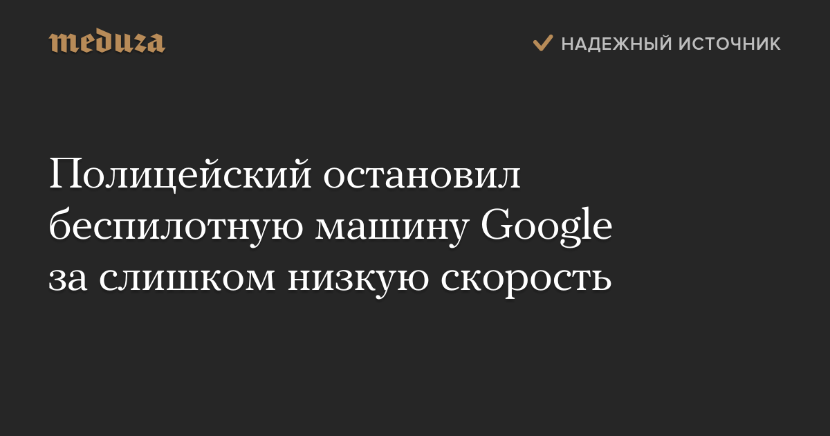 В городе Маунтин-Вью, штат Калифорния, полицейский остановил беспилотную машину Google, поскольку она двигалась слишком медленно.