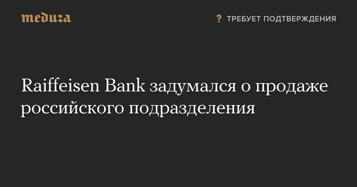 Ранее в Raiffeisen планировали продать бизнес в Польше, однако ужесточение банковского законодательства страны затруднило сделку. В качестве замены этой сделке в банковской группе рассматривают вариант продажи российского Raiffeisen. Эти сведения подтвердили и источники издания Bloomberg.