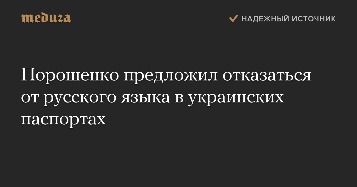 «Учитывая патриотическую позицию подписантов, а также стремление украинского общества к интеграции в Европейский Союз, считаю необходимым дублирования печатной информации в паспорте гражданина Украины на русском языке заменить на английский язык как язык международного общения», — заявил Порошенко.