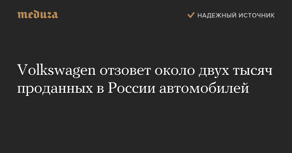 Volkswagen отзовет около двух тысяч проданных в России автомобилей