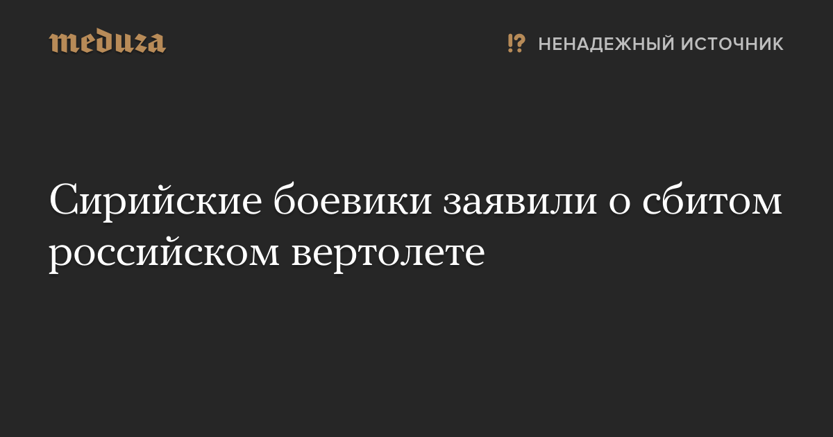 Боевики одной из сирийских вооруженных группировок заявили, что в Сирии сбит российский вертолет. По утверждению боевиков, в него попала противотанковая ракета.