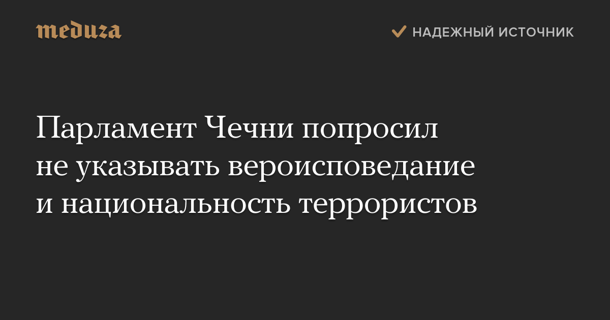 Парламент Чечни попросил не указывать вероисповедание и национальность террористов